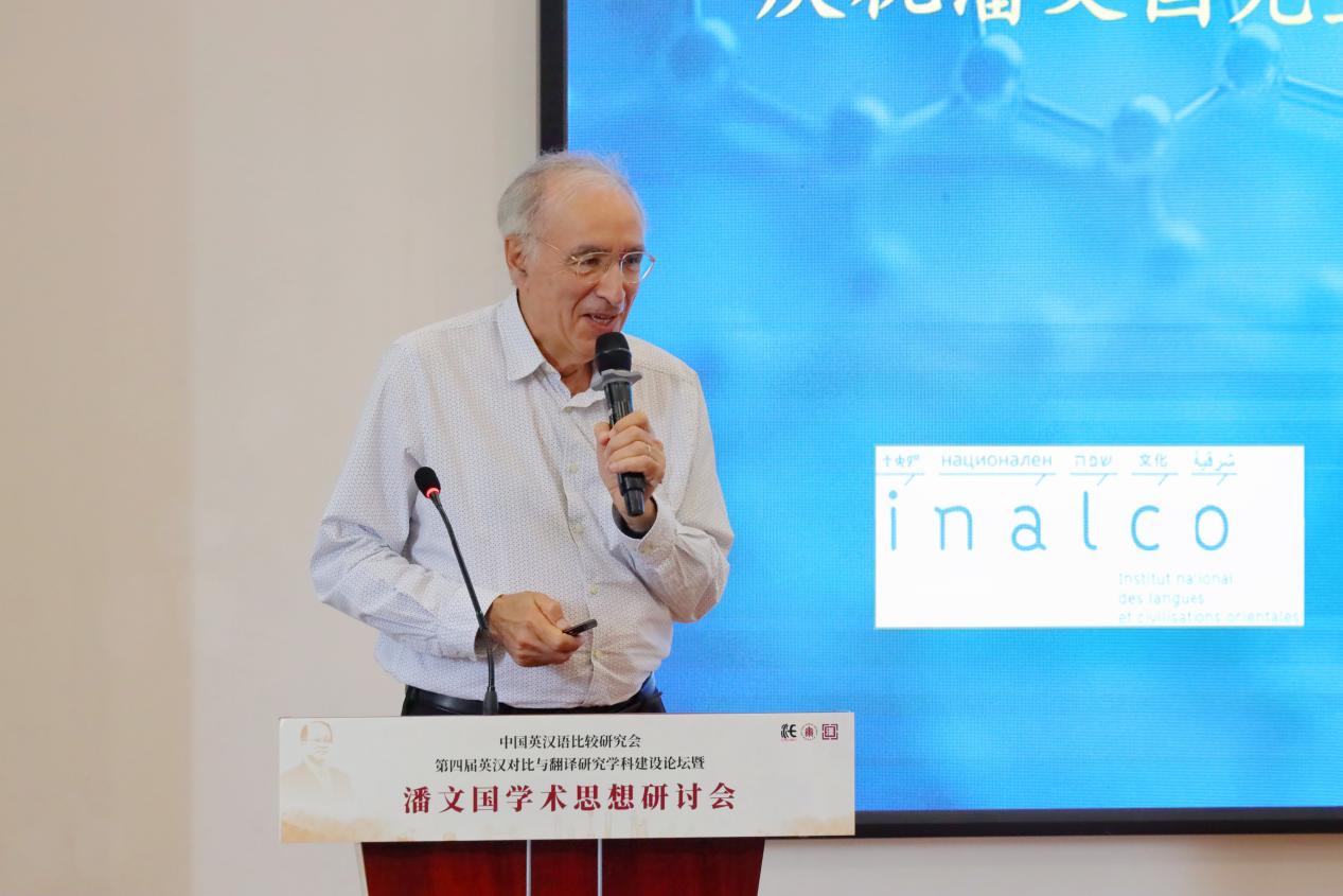 法国国民教育部首任汉语总督学、欧洲汉语教学协会会长、巴黎东方语言文化学院博士生导师白乐桑教授以“汉字作为教学单位及其多维度的性质——庆祝潘文国先生八十寿辰”为题,从语言教育论及思维、艺术、符号学的角度探讨汉字在汉语教育及中国文化中的独特性,并分析了汉字作为多维度单位的特征。白乐桑教授指出,中文教育的范式有待彻底改变,而改变的基点在于充分认可汉字的独特地位及其多维度的性质。随后,中国英汉语比较研究会会长罗选民教授做题为“学术研究的中国灵魂与国际视野——贺潘文国先生八秩寿辰”的报告。他从学术视野、建构中国特色学术话语体系、中华文化传承与传播、强烈的社会责任感、呕心沥血从事教育教学等方面,向与会者展示了潘文国先生学术探索道路上的“中国灵魂,国际视野”。