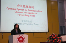 心理语言学专业委员会会长董燕萍教授致开幕词。她首先代表心理语言学专业委员会向与会人员介绍了委员会成立两年来所做的工作和取得的成果,指出心理语言学应注重各方面的交流与合作,特别是心理学与语言学的交流与合作,强调做研究要坚持以研究问题为导向、探寻好的研究方法,多进行面对面的交流,从而推进理论和科研工作的不断发展。会议还收到了著名心理学家、北京师范大学彭聃龄教授的贺词。